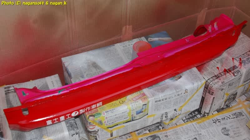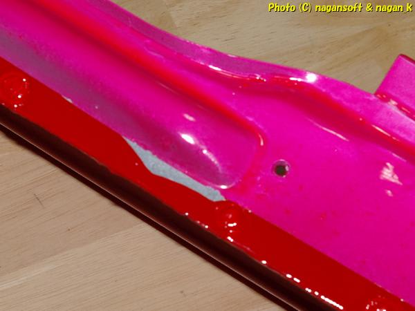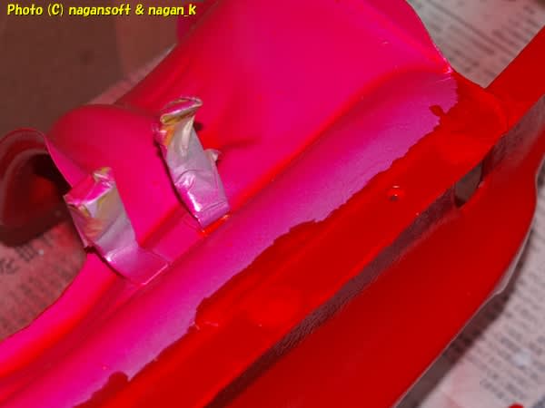 というのを2セットしまして、3回目にシンナーを筆でなすくってから、色のついた塗料を筆塗りしてやりました。