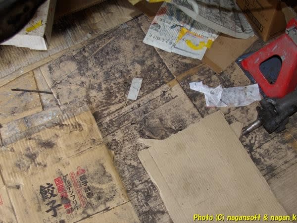 私が転がる床周辺が落下した錆クズで汚れてイヤーンなのです。