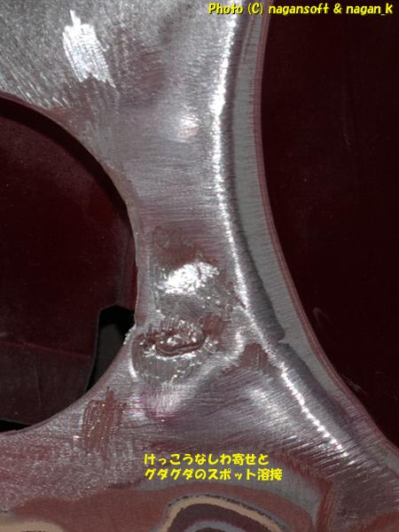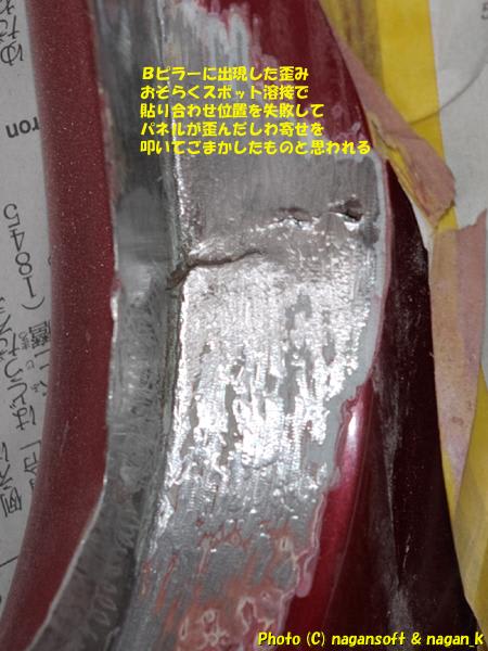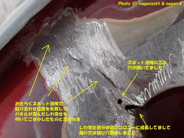 まあー、スポット溶接が下手くそってことは、そのパネルの合わせもどんくさいというか、適確に仕事していないんですよね。本当に右側を担当した組立工員の技量を疑いたくなります。