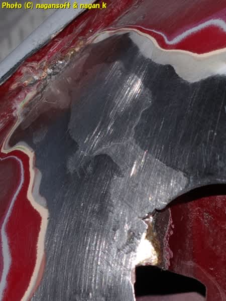 かなりグスグスになっていてしわ寄せ部分は錆コロニーになっていたのです。