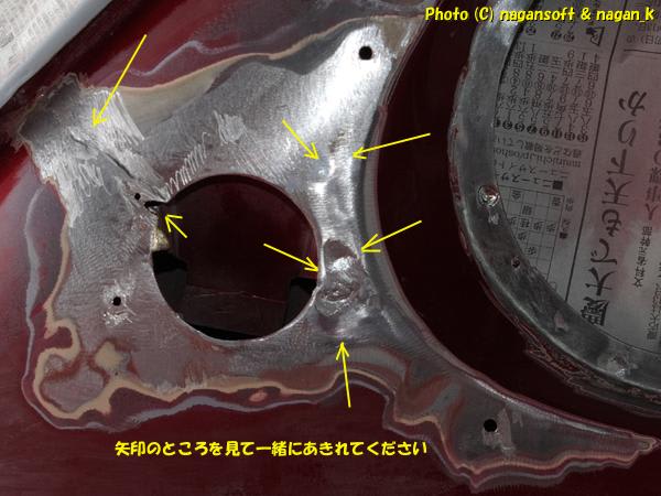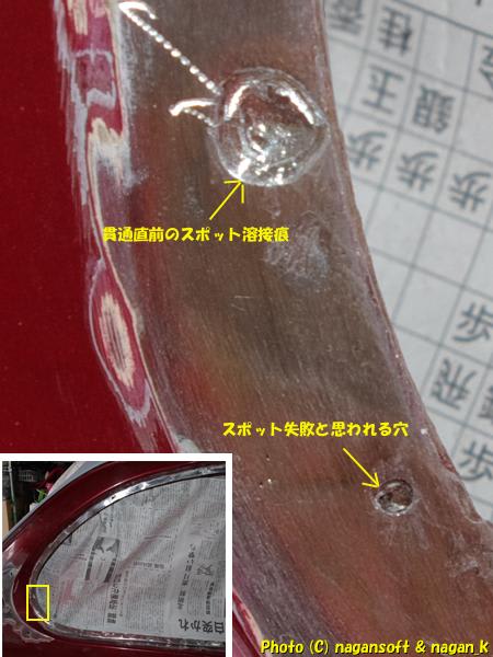 こんなスポット溶接穴貫通直前があちこちにあるのです。