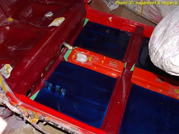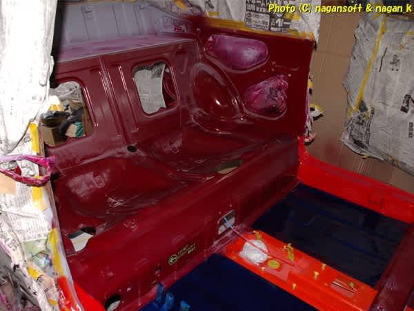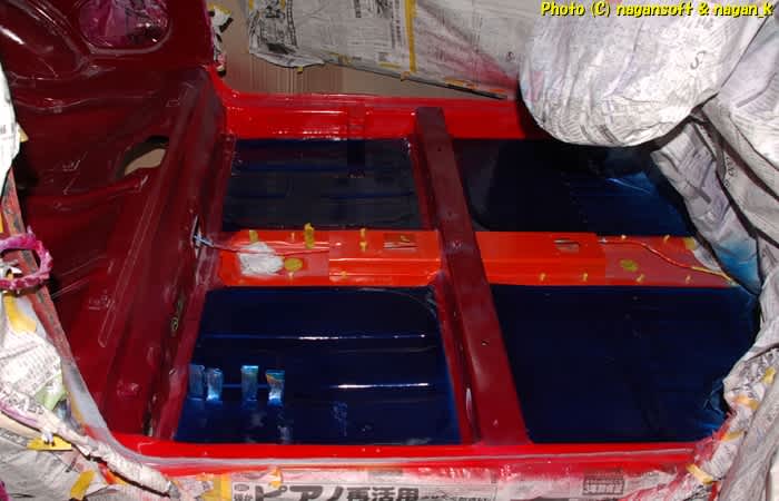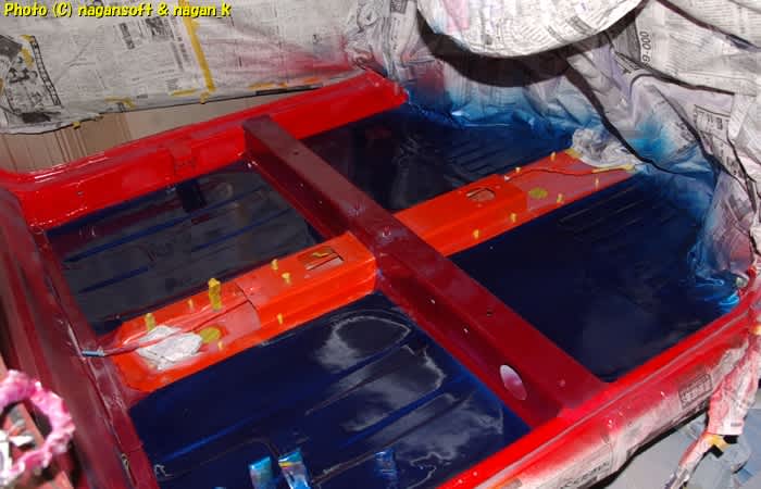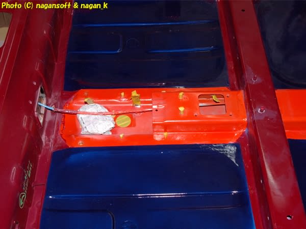 ついては、サイドシルとセンタートンネルが浮き上がるように目立って良し。横切っている梁もローヤルレッドでほどほどの存在感を主張して良しです。
