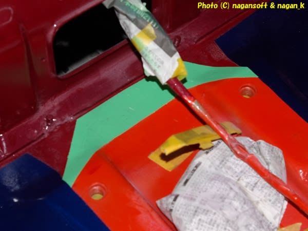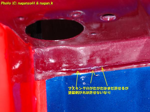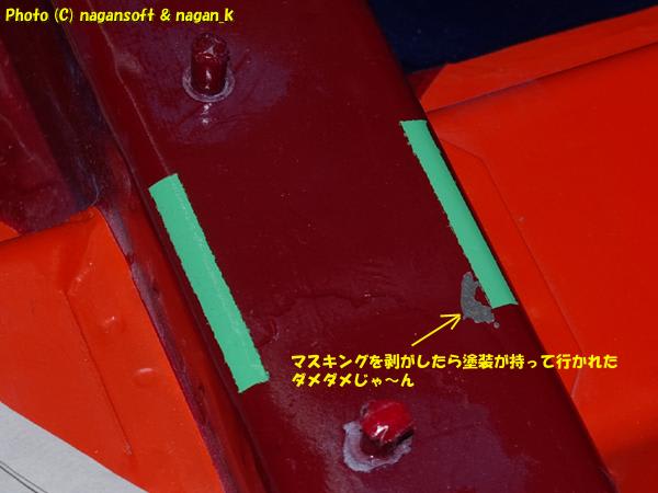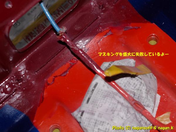下地がダメだったんでしょうね。マスキングテープに塗装をもっていかれる場所が出現です。(ちなみにハンダの部分です)