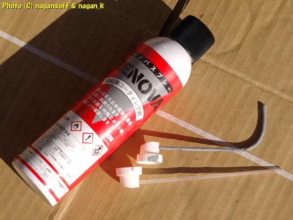 錆転換剤スプレー(レノバスプレー)が活躍です。もちろん自作の先曲げノズルを装着します。