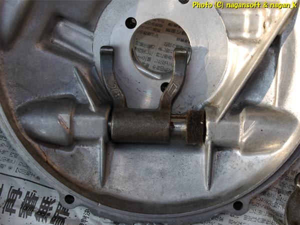 R-2君、クラッチハウジング右カバー分解3日目、デスビドライブシャフト分解完了、クラッチリリースフォーク分解完了