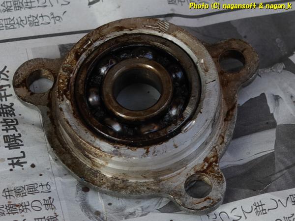 うんしょうんしょとネジを回したら、じんわりとベアリングが出てきて「ポトリ」と抜き取りに成功です。