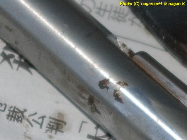 このシャフトですが、サンドペーパーで目立つ錆び肌は削りましたが、深い点錆も存在するのです。
