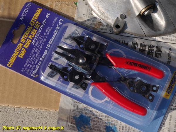 昨晩にアストロプロダクツで買ったスナップリングプライヤーの登場です。