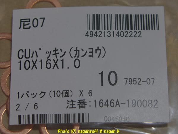 フロントブレーキホースのクラッシュワッシャー用途です。