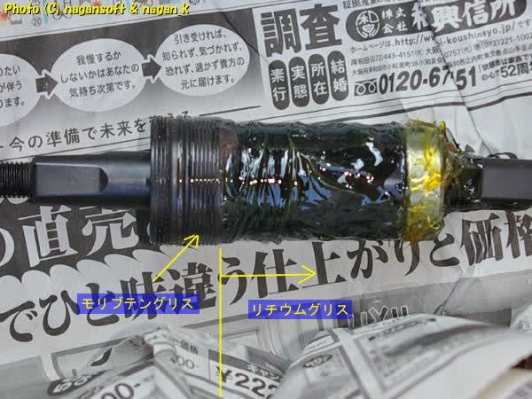 この上に、BBカートリッジの反対側カップを、グリスを塗りつけて締め上げます。
