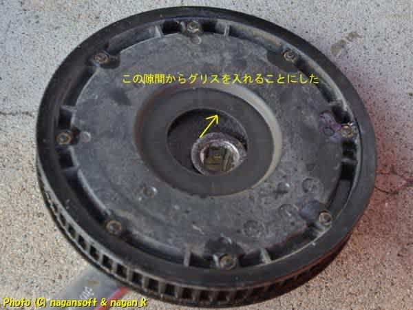 内部のお掃除はできませんが、外周ギヤ部品と、内周ギヤ部品の隙間からグリスを吹き込むことにします。