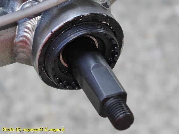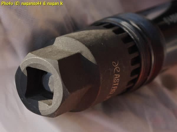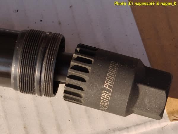 そう、つまり、このBBカートリッジ相手に、この工具にダイレクトにソケットレンチを食いつかせることができません。