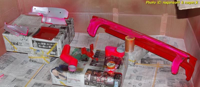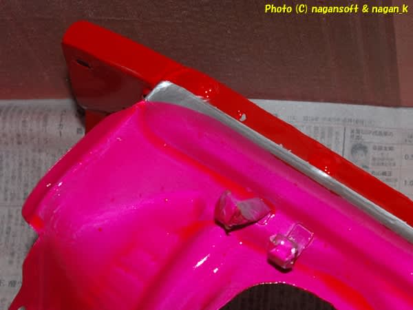 蛍光ピンクを吹くときに、突風ちゃぶ台返しとかしたからねー、手に塗料が付いたりして、その汚れ手で裏側を触ったってことですよね。