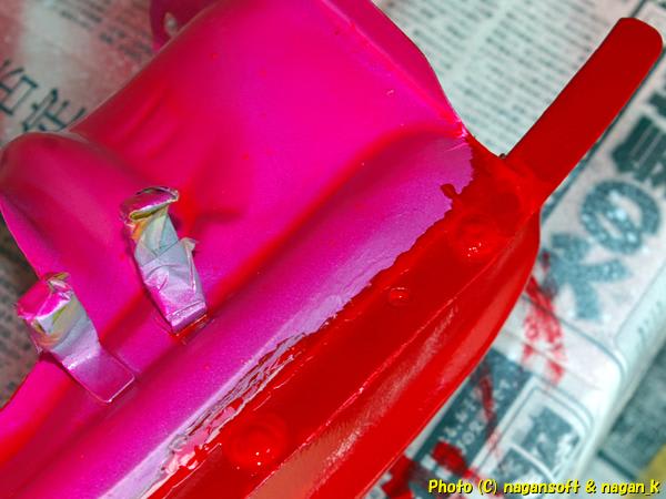 えー、せっかくの赤色なので、ワンポイントというかチンドンや仕上げにしてやる。これがせめてもの私の抵抗です。