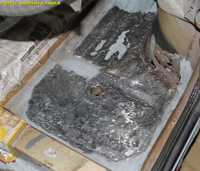 運転席奥床は真上から確認できないので、数日間の点錆チェック期間を設けましたが、今回はいろんな方向から確認できるので取り残し率も低いだろうと判断してハンダ作業開始します。