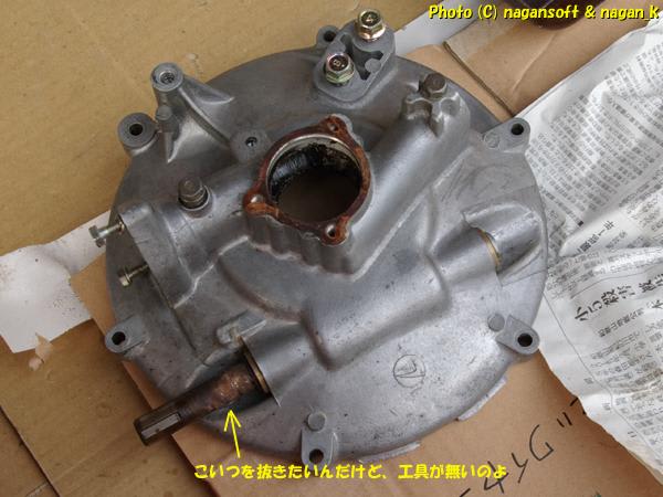 あとクラッチハウジング右カバーに残っているのは、クラッチリリースフォークシャフトです。そいつを抜きたいなーと考えるのです。