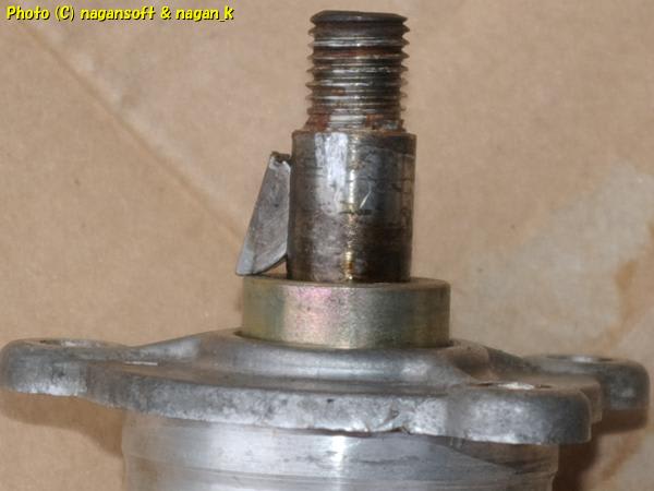 よーく確認すると、シャフトの先端が錆びているのですが、その錆びの分が膨らみとなって抜けないのがわかりました。