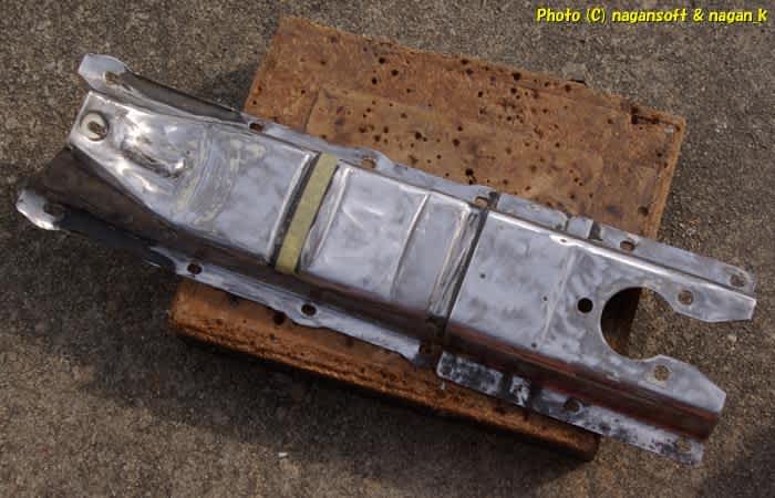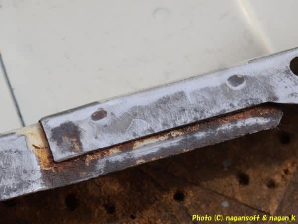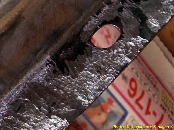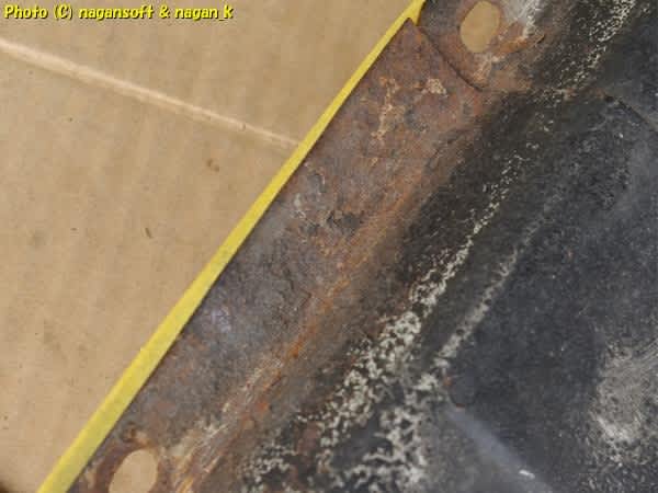 錆穴貫通はなく、でこぼこですが鉄板が残りました。スバルの部品としては上出来の部類です。