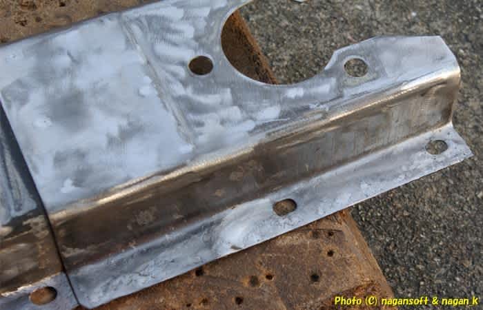 床に転がる部品だからねー。ちょっとでも錆に強く、かつ、鉄板の強度も欲しいので、でこぼこ肌をハンダで埋めることにしました。