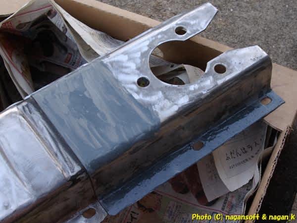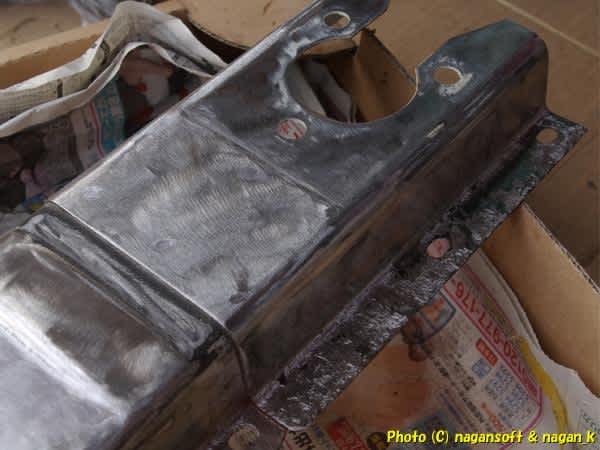 この程度までハンダで埋めました。ついで仕事でスポット溶接痕もハンダで埋めときました。