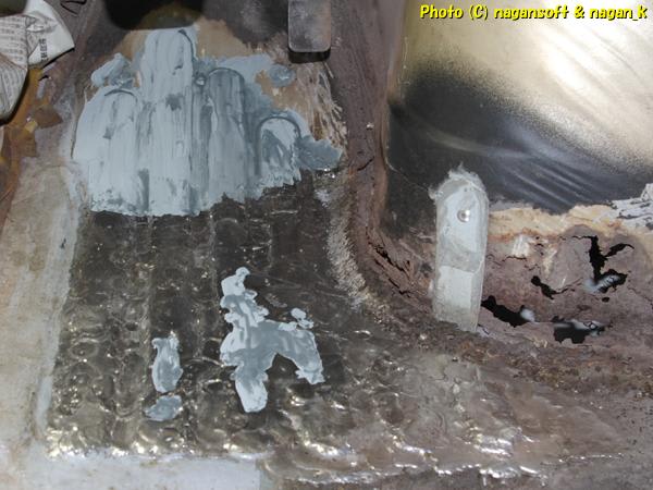 ここも強烈に黒錆びに覆われてます。(浮き錆び、赤錆といったものは、以前にディスクグラインダーで研磨済みです)