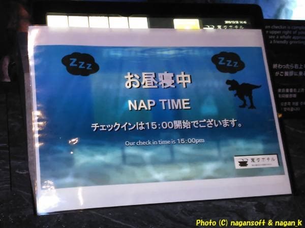 「変なホテル」については知人からパンフレットが欲しいと要望があったので、ロビーへ行ってみることにしました。