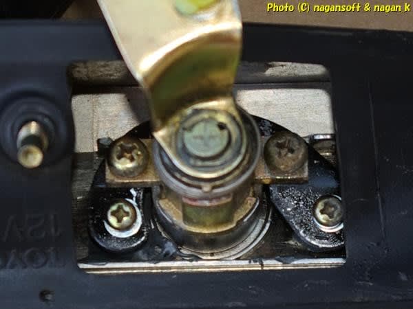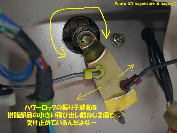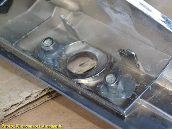 このガーニッシュにネジ2個でキーシリンダーを固定する設計ですが、パワーロックでブラケットをガツガツと振り子運動するのよね。この動作をプラ樹脂雌ねじ2個で受け止めるってのがきびしいんだと思います。