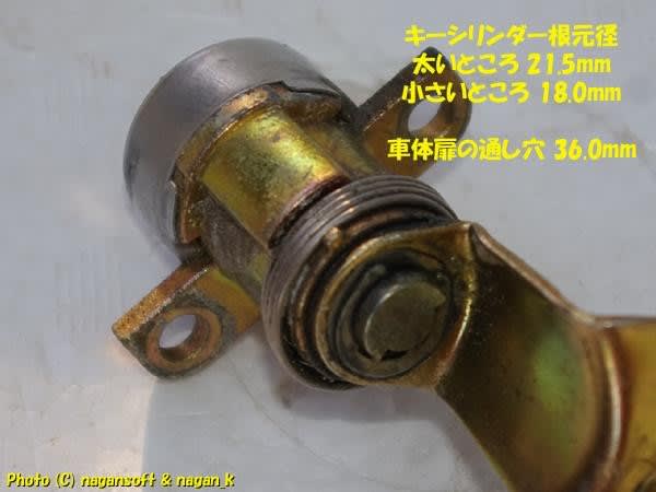 キーシリンダー根元径は太いところで21.5mm細いところで18.0mm。扉フレームの通し穴は36.0mm