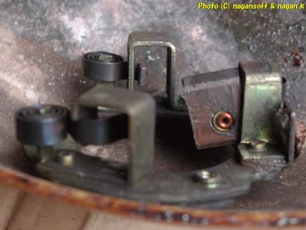 この部分も少し錆びていたので、軽くサンドペーパーで錆取りしましたが、まだまだ黒色塗装がしっかりしてました。