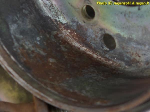 リヤカバーのカーボン体積していたところは、その下から錆が出てきました。