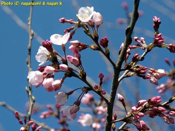 我が家の近所の公園で、桜がチラホラと咲き始めました。