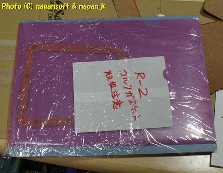 ちなみに私のR-2は厚紙が挟まってました。多分、ケーキの箱だと思います。白ベースに赤色の印刷が見えまして「kotobuki」と読めるようなアルファベットと、「要冷蔵」が読見とれる紙でした。
