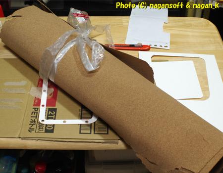 クリアーフォルダーは柔らかいので、曲がってコルクが切れたらイヤなので、さらに厚紙を敷いて、ラップで固定です。