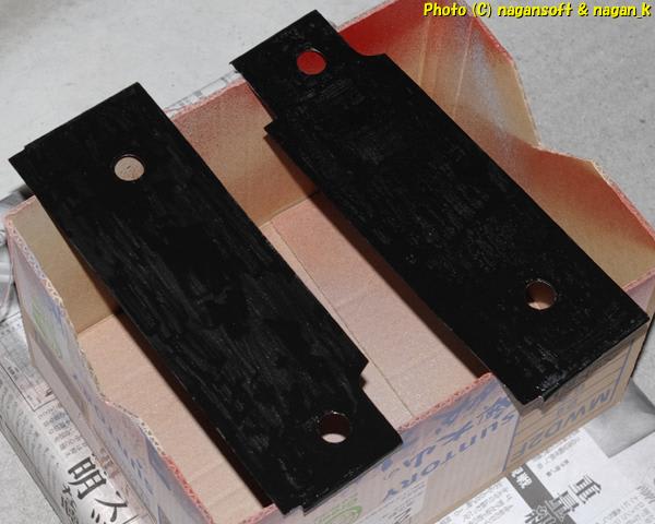 スカッフって錆びやすい(どうしても水が来やすい部品です)ので念には念をと、裏面にさらにクリヤーコートしました。つまりクリヤーの厚塗りです。