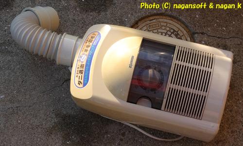 嫁さんが実家から持参してきた嫁入り道具のひとつ、「布団乾燥機」です。もちろんすごい年式の代物です。