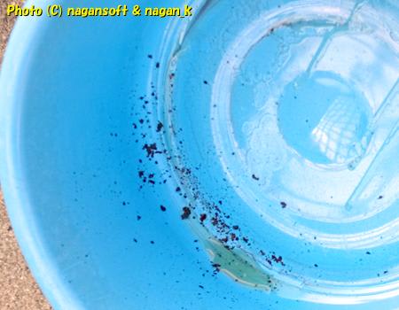 液の底には、サビもだけど、塗料片も出てきました。