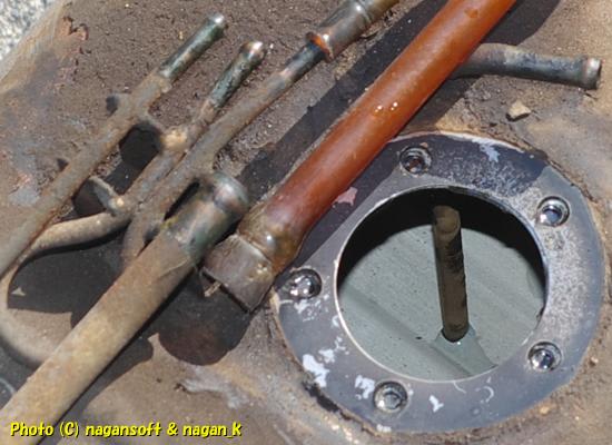 と、ここまでが調査編です。ガソリンタンクの内部が一見して綺麗でも、その下がこんなことになっているとは思いもしませんでした。