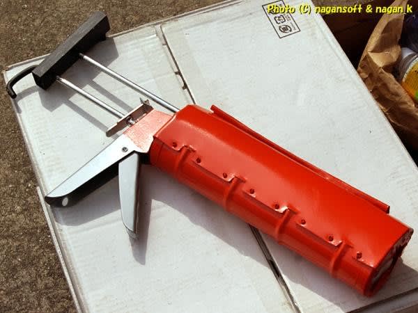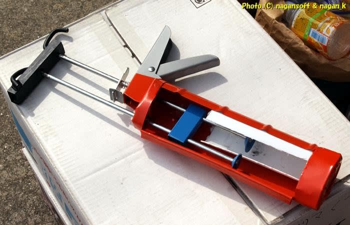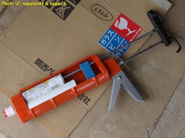 パネルボンドをセットします。まだボンドを押すわけにはいかないのでテンションがかかる直前までガンを引きました。