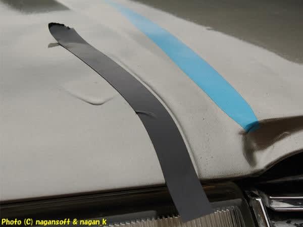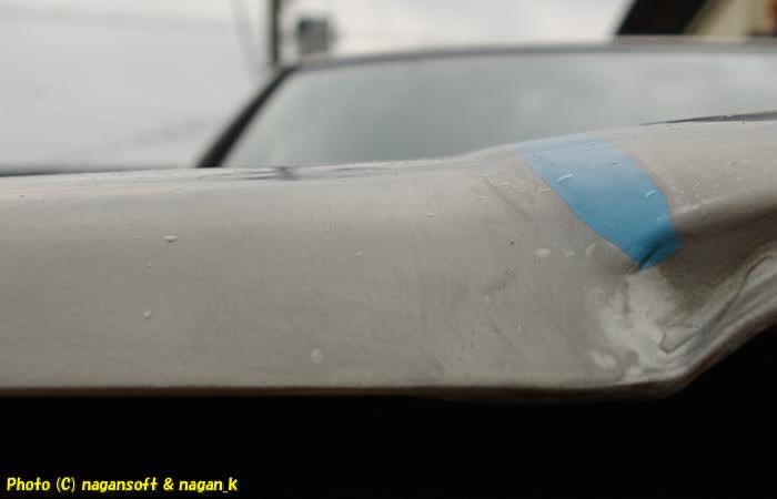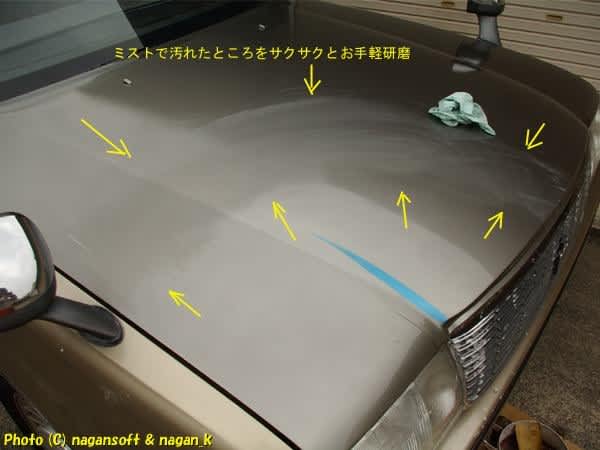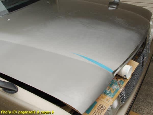 ボンネットのクリヤー塗料が硬化していたらそれを研ぐ、硬化していないときはルーフを細かいコンパウンドで磨きたくる。どの作業になるかです。