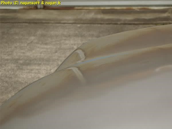 横から透かして隆起がほぼ消えました。手で撫でると微妙な隆起を感じるところがあるので、そこを#800で撫で研ぎます。