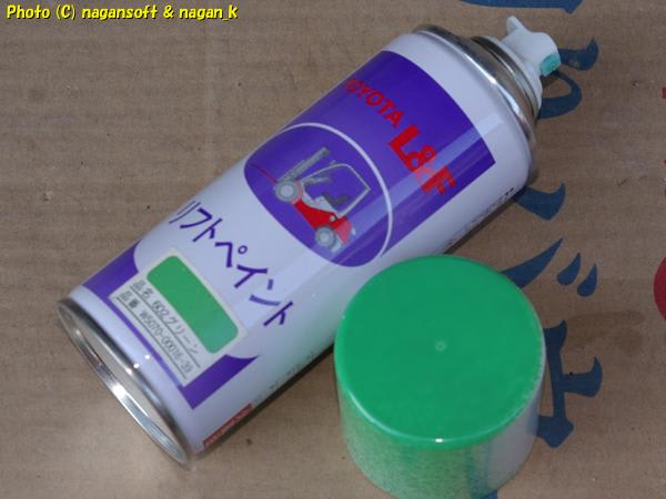 はい、いつものトヨタフォークリフト用補修ラッカースプレーですよ。602グリーンという色です。