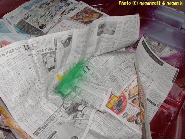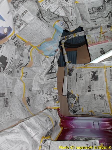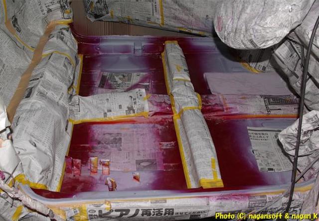 リヤシート部分を汚したくないので新聞紙で壁をつくりました。