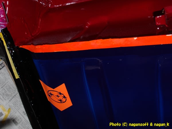 お客さんにもちょっと手伝ってもらって室内のマスキングです。(実は外が寒くて仕方ないのでスバル室内に潜り込んで作業しながら話したのでした。もちろん私はお客さんもこき使うのですよ)