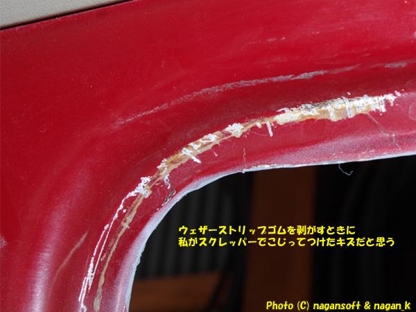 気になるのは、私がストリップゴムを剥がすときにスクレッパーを差し込んでつけたと思われるキズです。(こんなにひどいキズをつけた記憶はないのですが、新しいキズなので私がしたんだと思います)