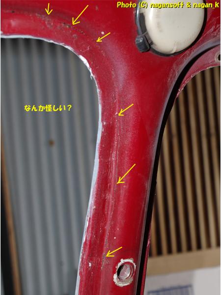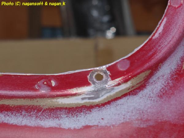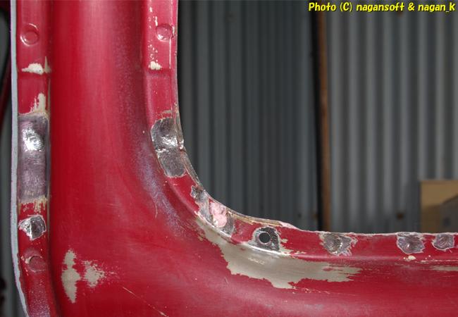 左乗降口上角部分のキズは、リューターでさらりと広げて内部を確認。錆等がないのを確認です。
