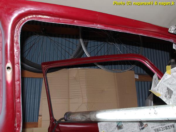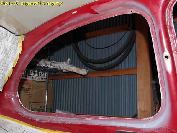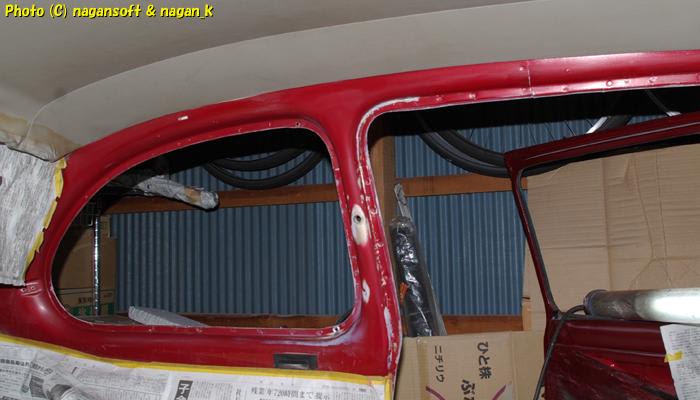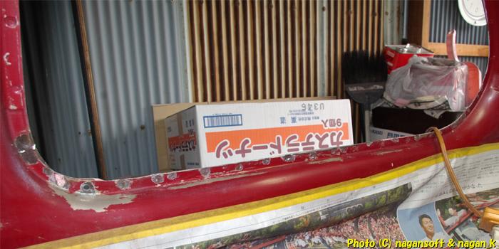 このあとは、左右両方とも、パネルの隙間へシーカフレックス(シール)を仕込みました。研磨して露出した鉄肌へエポローバル(サビ止め塗料)を筆塗です。