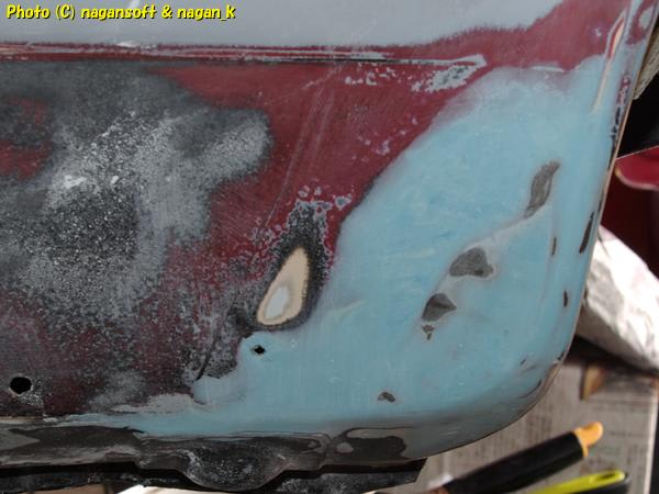 さくさくとサンドペーパーで足付け下地処置の荒らしをしながら点検です。