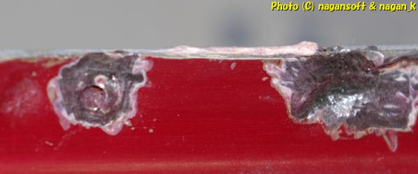 半数はスポット溶接に穴です。半数は巨大クレーターで内部に錆です。