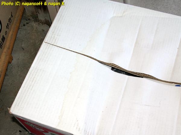 湿気で変形しているのではないですよ。湿気でダンボール箱がダメになるときは、下の箱が風船のように膨らむか、または内側に凹むようにしてダンボールが下からひしゃげていきます。