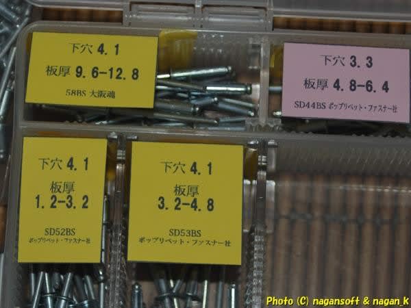 実際に車体をいじっているときに、どのリベットがいいかなーって小物入れをまさぐってあーだこーだというのもどうかと思います。